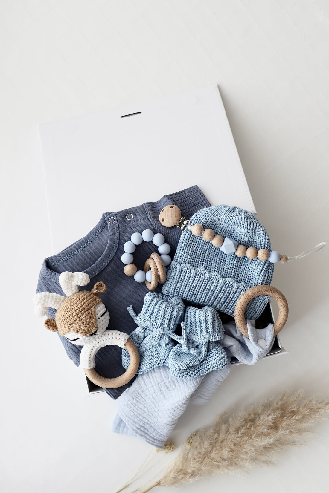 Feiere die Ankunft eines kleinen Jungen mit unserer liebevoll ausgewählten Kollektion „Baby Geschenk Junge“.Diese Geschenkboxen vereinen zauberhafte und praktische Essentials – perfekt, um den neuen Erdenbürger stilvoll und mit ganz viel Herz willkommen zu heissen ✨