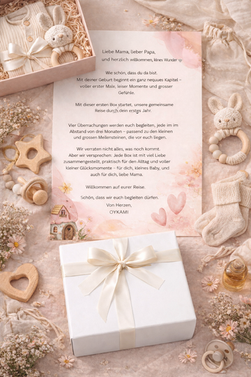 ♡ Each box includes a heartfelt letter that explains the respective milestone and personally surprises the parents (and their baby) – from the welcome box with a welcome letter to other special moments in the first year.