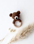 - handgehäkeltes Rasseltier "dunkler Bär" mit Glocke