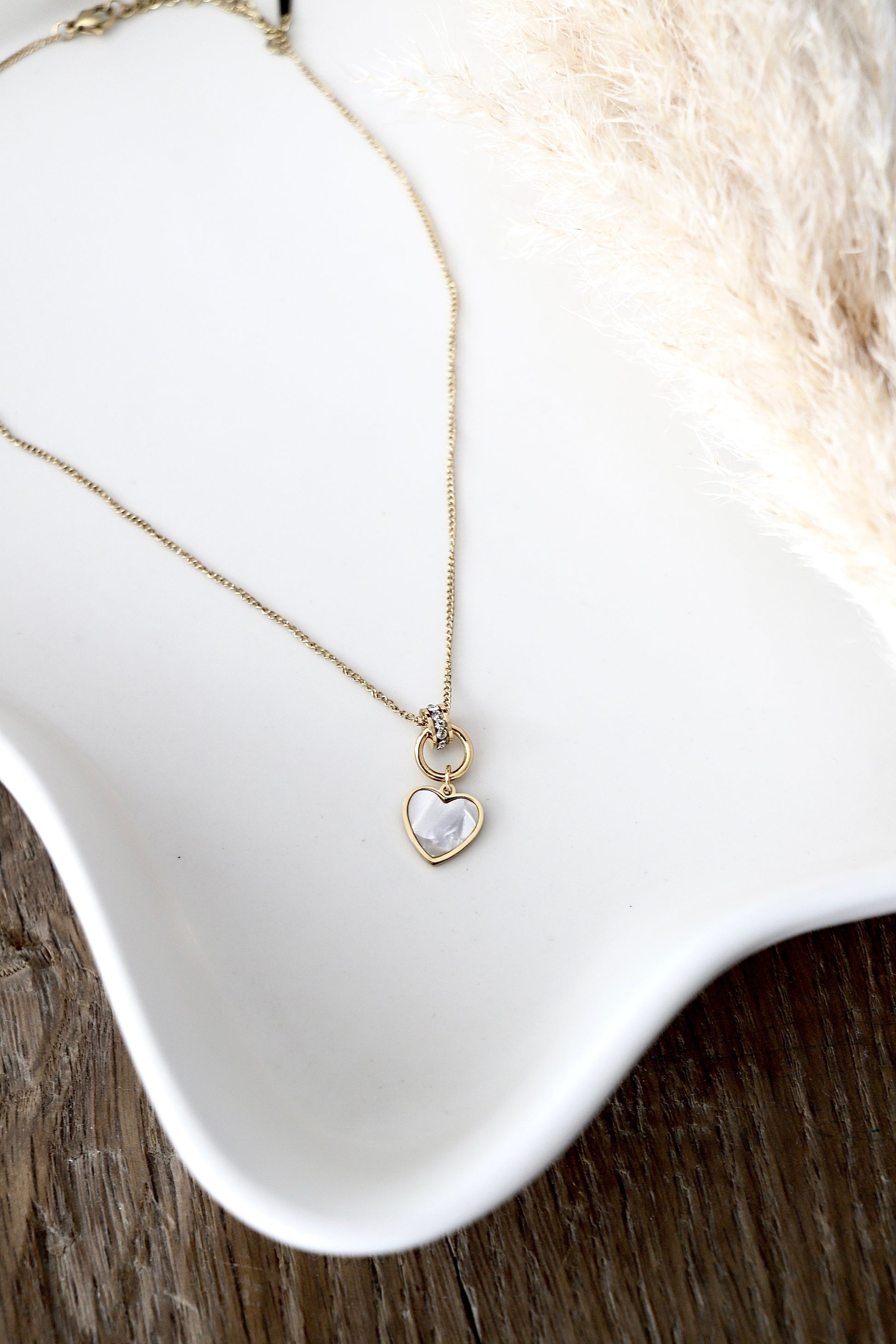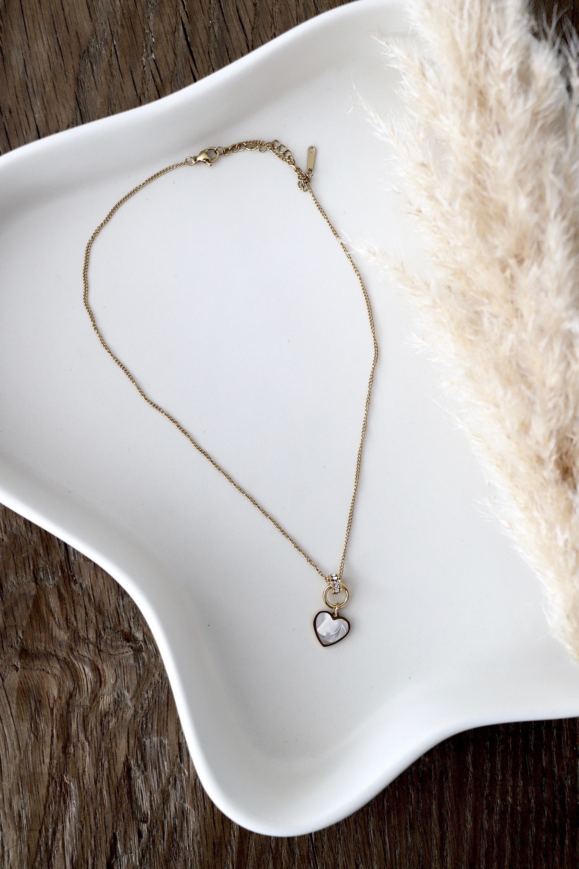 Vergoldete Halskette mit Herz aus Perlmutt-Optik