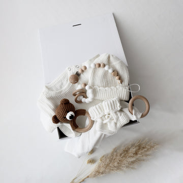 Entdecken Sie unsere Baby Geschenk Neutrale Farben Kollektion, die mit liebevoll ausgewählten, hochwertigen Babyartikeln in sanften, neutralen Farben begeistert. Perfekt als Geschenk zur Geburt, bietet sie sowohl Stil als auch Funktionalität für das Neugeborene.
